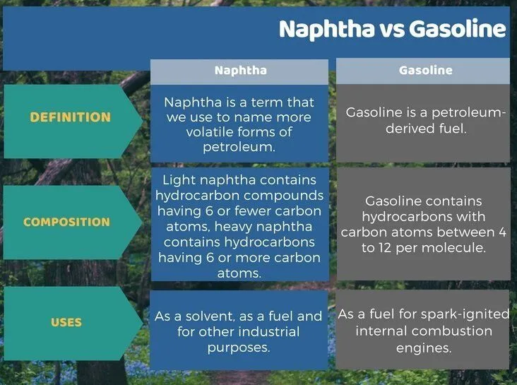 Heavy naphtha: Boils between 90 °C and 200 °C, with 6-12 carbon atoms.